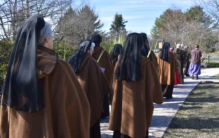 MERIDEN, CT (03-30-2026) - Franciscan Sisters of the Eucharist in every center are celebrating with solemnity the sacred days of Holy Week. This week before Easter concludes the Lenten season and is a prayerful experience offered by the Church to reflect on, pray about, and identify with the sufferings of Christ in the days surrounding his Passion, death and resurrection. The liturgies on the days of Holy Week are rich in Scripture, symbol and ritual. Since their early years the Franciscan Sisters of the Eucharist have found spiritual and community nourishment in celebrating these days in unique ways within the community, with special foods and a focus for each day based on the Mass readings. The days of Holy Week are days "set aside" from a usual routine and become memorable. In several centers, lay faithful participate in the meaningful liturgies and services including Tenebrae in the night just before dawn on Holy Thursday, Good Friday and Holy Saturday. Below are a few images of the Palm Sunday blessing of the palms and procession at the motherhouse Chapel of St. John, Meriden.