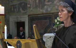 ROME (05-09-2025) - Sister Mary Mercy Lee, FSE considered it a privilege to proclaim the First Reading at the newly-elected Holy Father's Mass for the Cardinal-electors today in the Sistine Chapel. Sister Mary Mercy serves in the English language section at a Vatican office. She professed perpetual vows in the Franciscan Sisters of the Eucharist community last year on May 26 and began ministering at the Holy See in August.